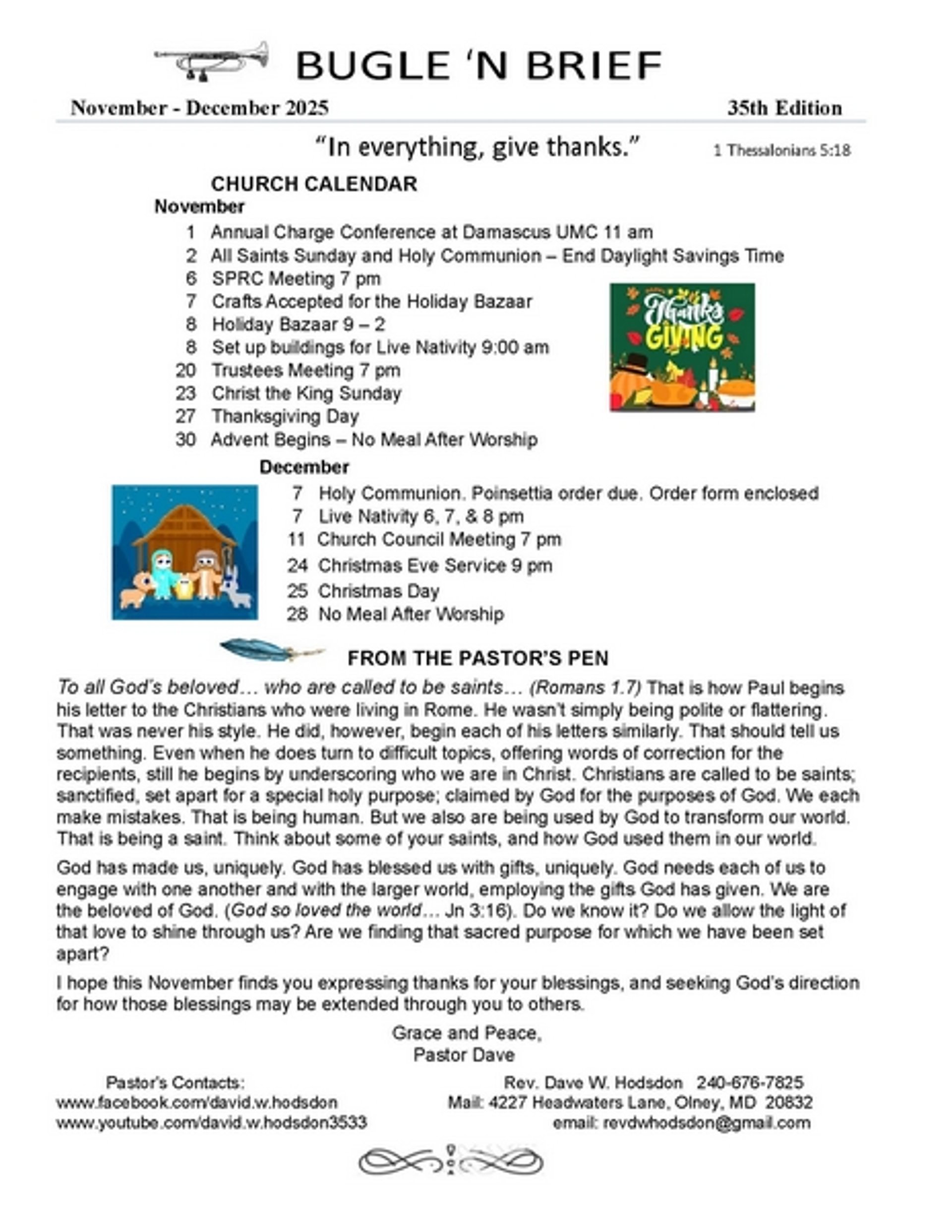Our Church organizes various events, from Christmas celebrations, Especially our Live Nativity held behind the Urbana Fire Hall to Easter festivities and Thanksgiving prayers.